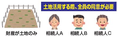・共有名義のまま、相続して放置すると、現在の相続人のうち誰かが亡くなった場合、さらにその次の相続人に権利が移るので収拾がつかなくなり、土地活用も売却(現金化)も困難になってしまいます。