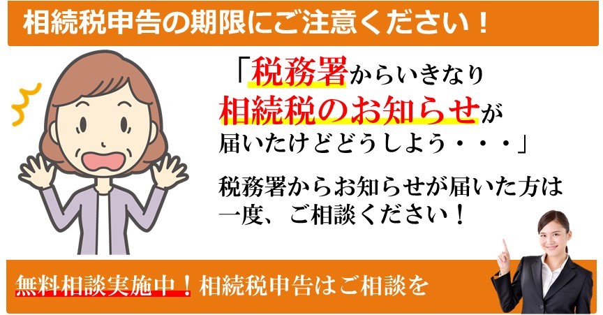 特に、「相続税の申告等についてのご案内」が来た方は早急にご相談ください。