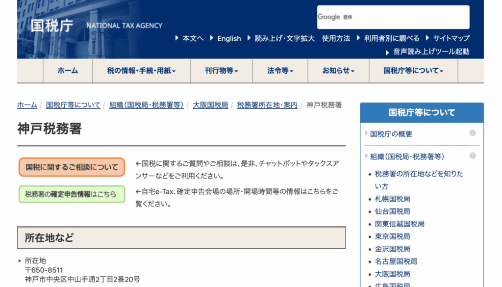 神戸税務署のサイト(国税庁公式サイト内)