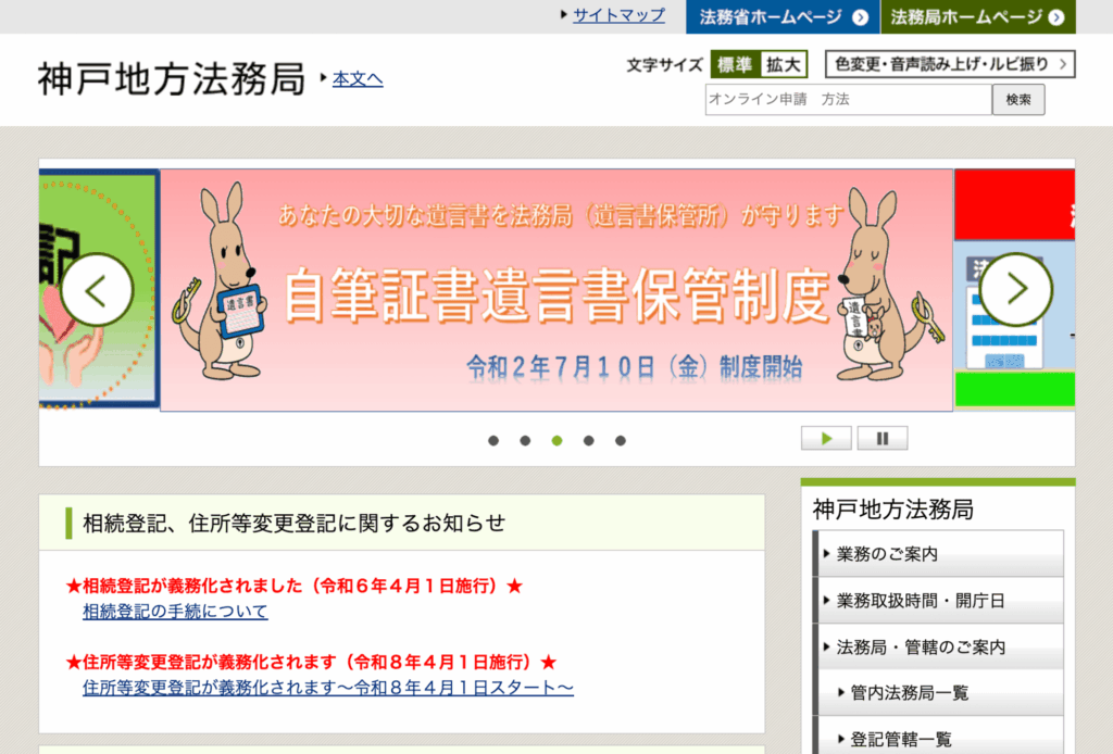 神戸地方法務局の公式サイト