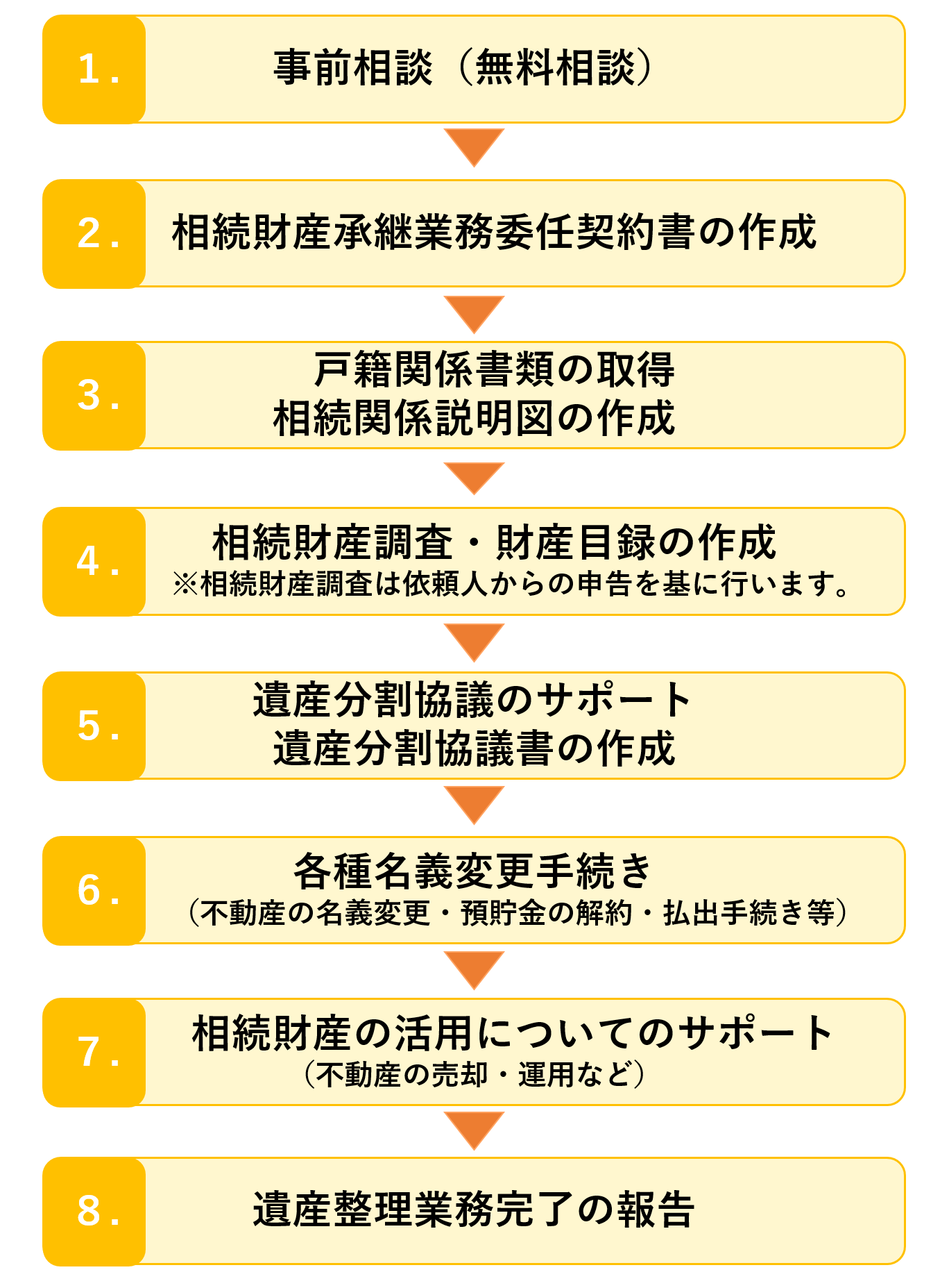 当事務所では、相続手続きや上記の遺産整理業務も同時に行います。